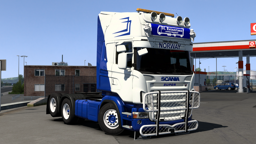 This is a skin based on a 3-axle Scania tractor from the norwegian transport company "H. Reinertsen Transport".